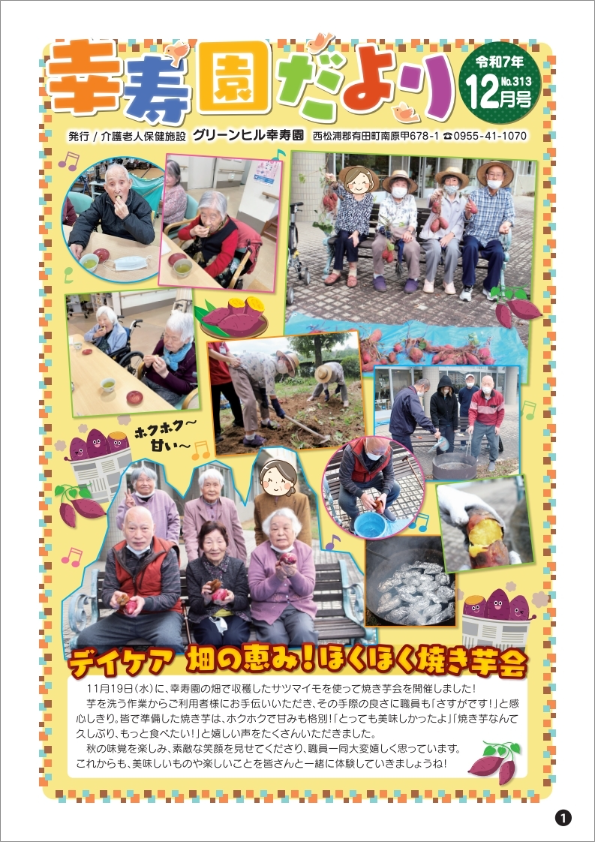 令和7年度 幸寿園だより 過去の幸寿園だよりはこちら↓↓ 令和5年度幸寿園だより♪ 令和6年度幸寿園だより♪ R7年4月号 R7年5月号 R7年6月号 R7年7月号 R7年8月号 R7年9月号 R7年10月号 R7年11月号 R7年12月号 ページトップへ サイトマップ プライパシーポリシー カスタマーハラスメントに対する基本方針